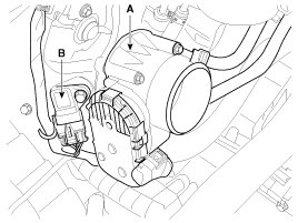 4. Remove the ETC (Electronic throttle control) module (A) and MAPS (Manifold absolute pressure sensor & IATS (Intake air temperature sensor) (B).