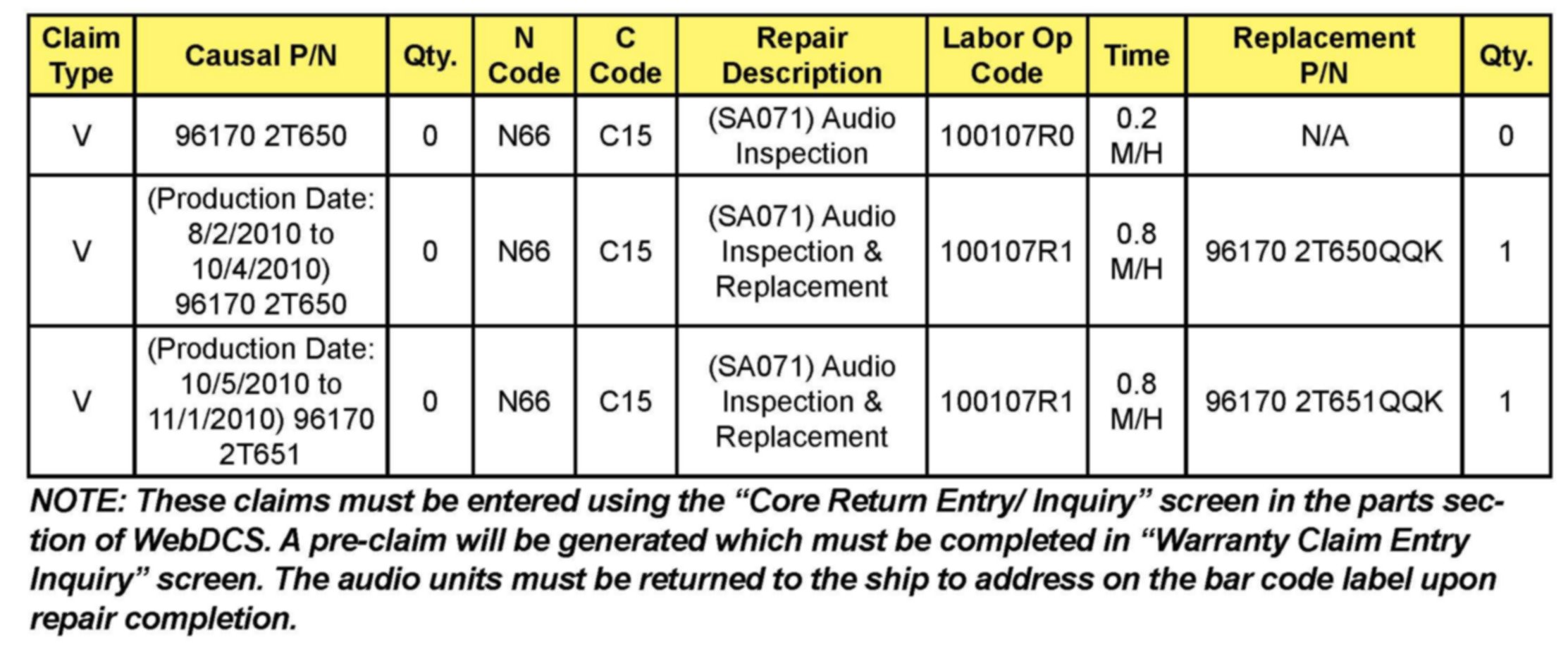 SERVICE ACTION: 2011 MY OPTIMA AUDIO INSPECTION (SA071)