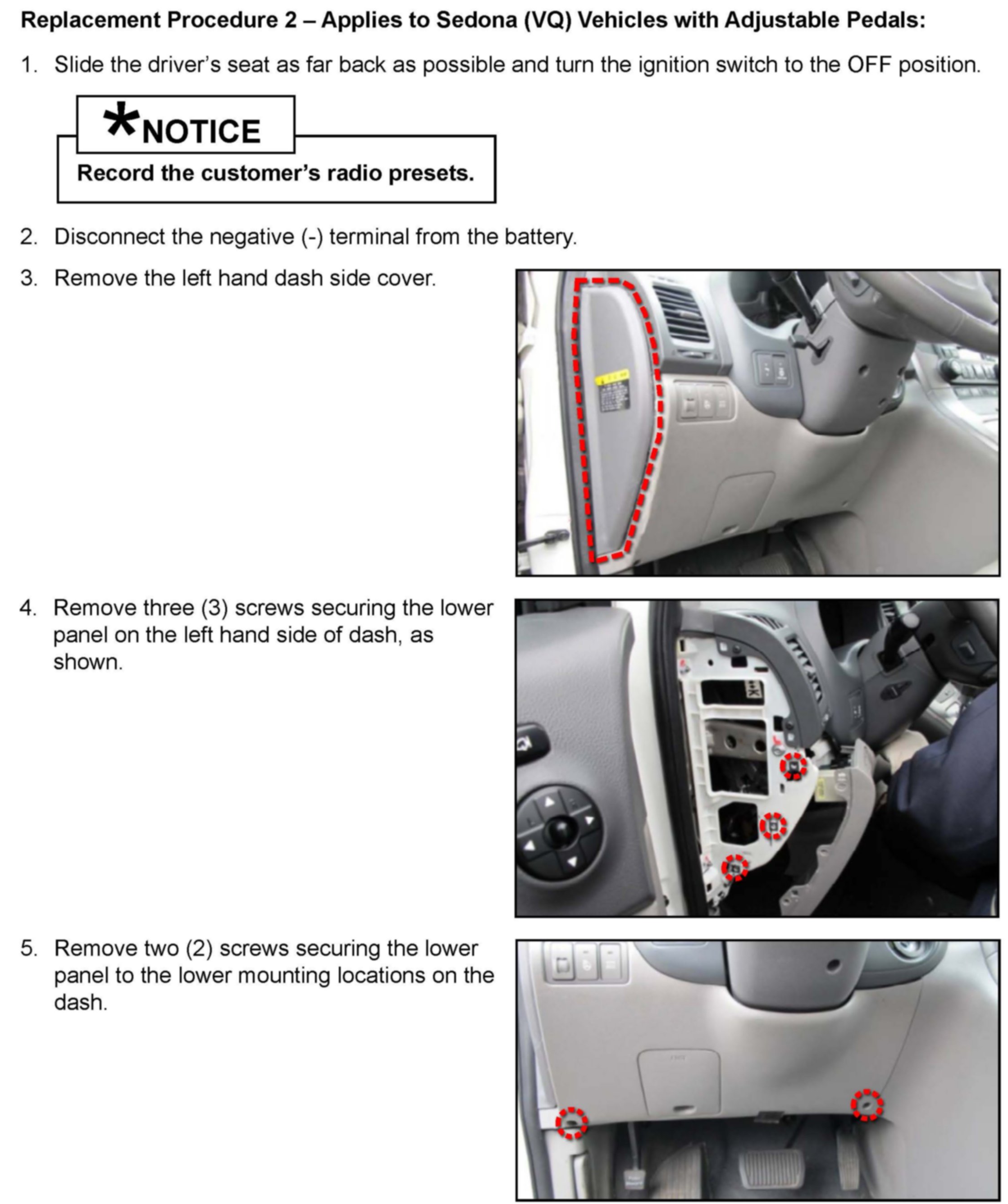Replacement Procedure 2-Applies to Sedona (VQ) Vehicles with Adjustable Pedals above.
