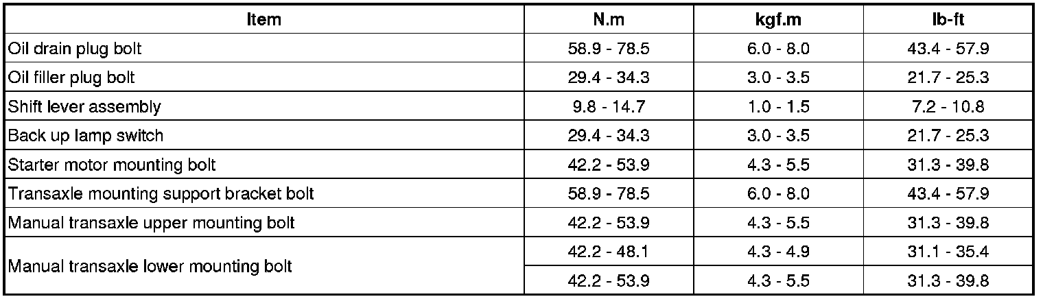Manual Transmission/Transaxle: Application and ID: Specifications