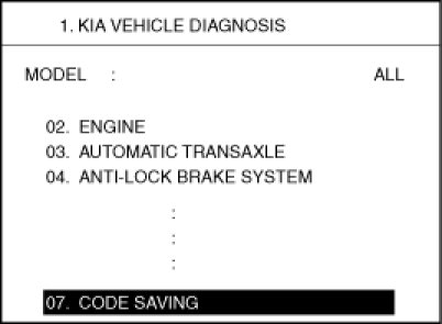 3. After selecting "CODE SAVING" menu, push "ENTER" key, then the screen will be shown as below.