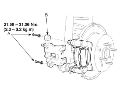 4. Install the brake pads (B) and pad shim (A) on the caliper bracket.