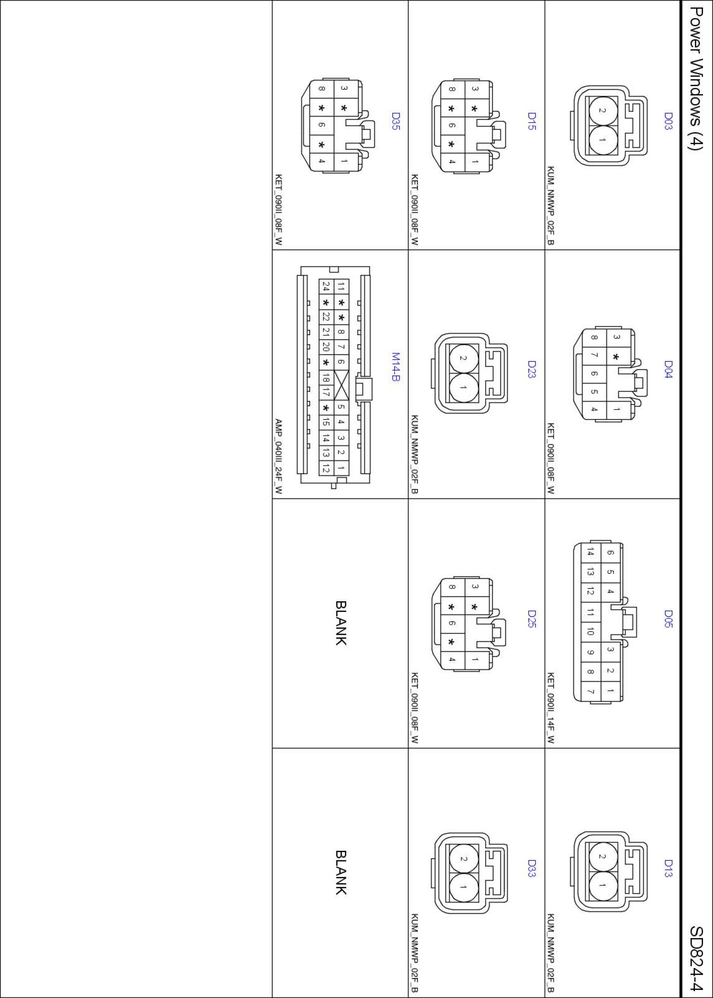 Power Windows (4) Connector Pin Outs:
