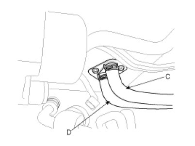 5. Disconnect the inlet (C) and outlet (D) heater hoses from the heater unit.