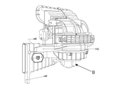 10. Remove the blower unit (B) from heater unit after loosening 3 screws.