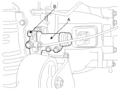 1. Loosen the bleeder screw(B) at the clutch release cylinder(A).