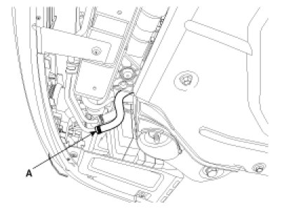 1. Drain the power steering fluid by disconnecting the return hose(A).