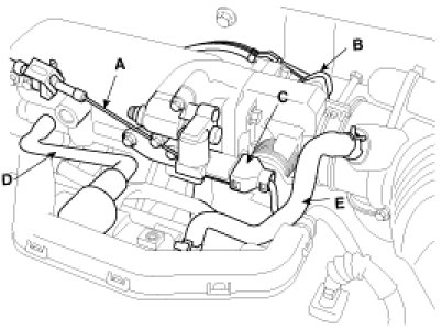 (3) Install the PCV(Positive Crankcase Ventilation) hose(A) and breather hose(B) to the cylinder head cover.