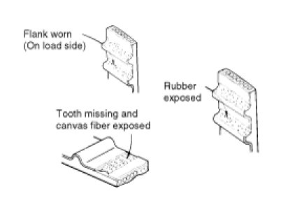 3. Inspect the belt closely. If the following problems are evident, replace the belt with a new one.