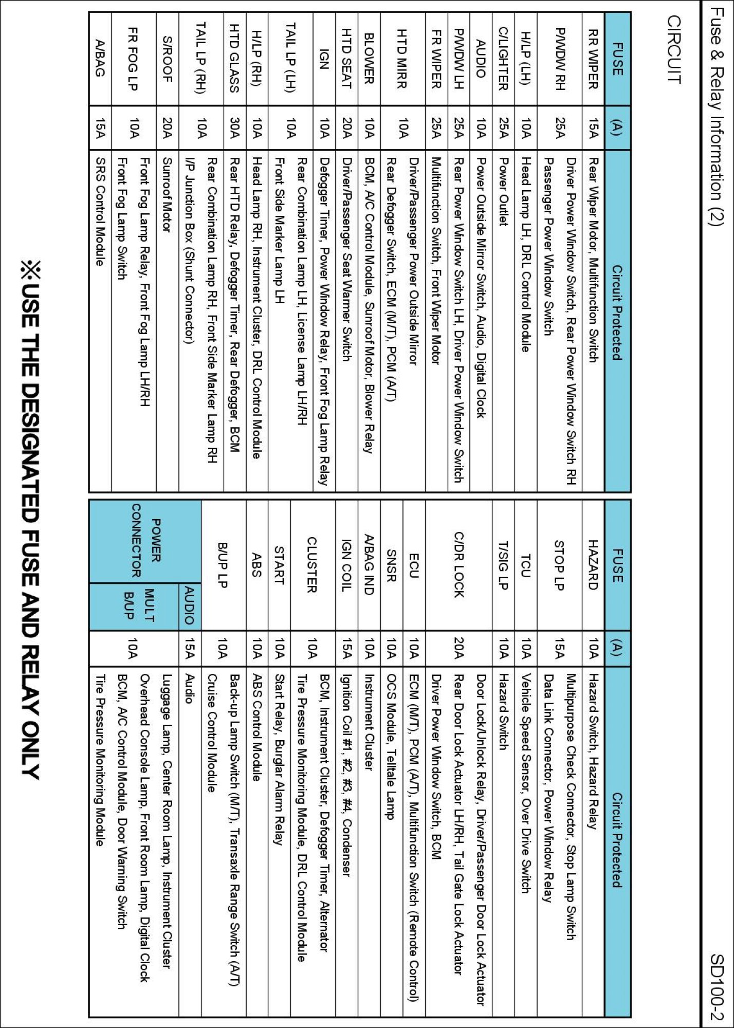 E/R Fuse And Relay Box Circuit Details: