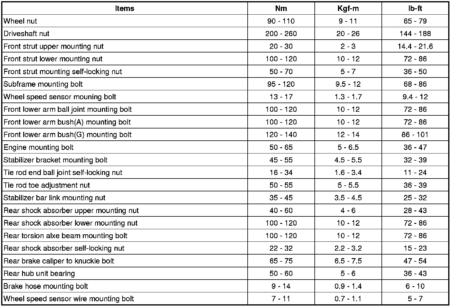 TIGHTENING TORQUE