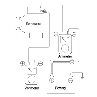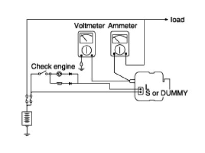 1. Check to see that the voltmeter reads as the same value as the battery voltage. If the voltmeter reads 0V, and the open circuit in the wire between generator "B" terminal and battery (+) terminal or poor grounding is suspected.