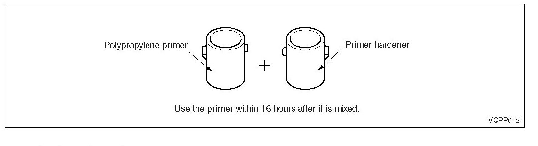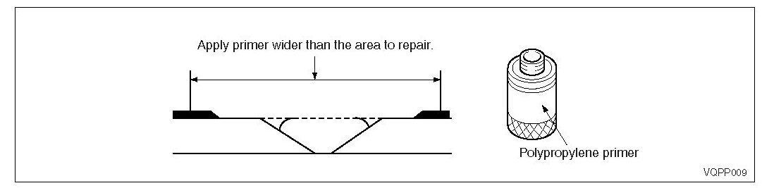 5. Apply polypropylene primer evenly with a brush over an area wider than the area to be repaired. Dry it at 20°C (68 °F) for more than 10 minutes.