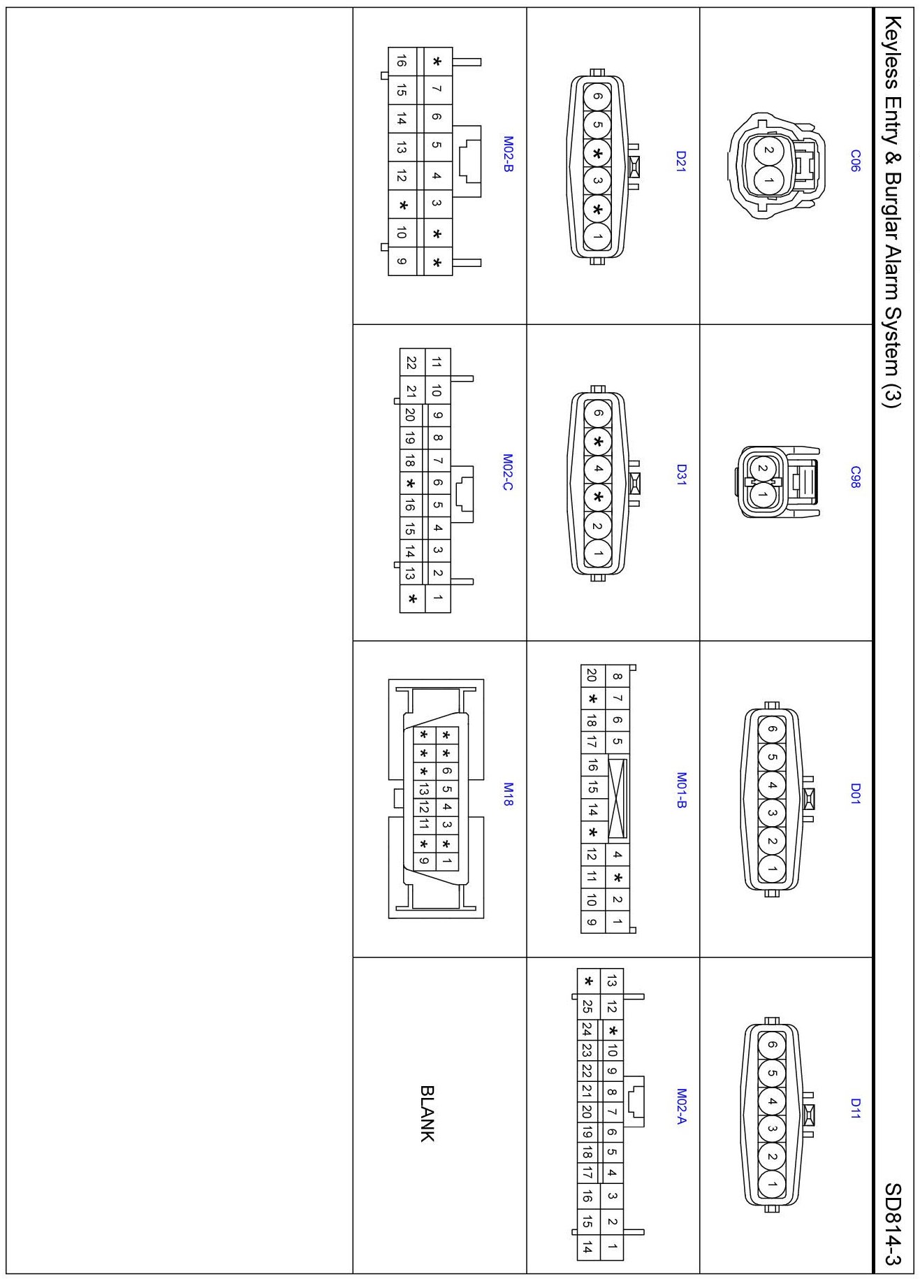 Keyless Entry And Burglar Alarm System (3) Connector Pin Outs: