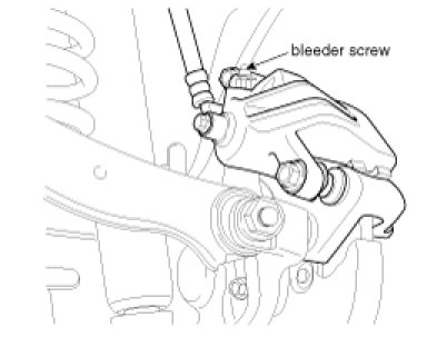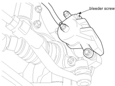 5. Pump the brake pedal several times, and then loosen the bleeder screw until fluid starts to run out without bubbles. Then close the bleeder screw.