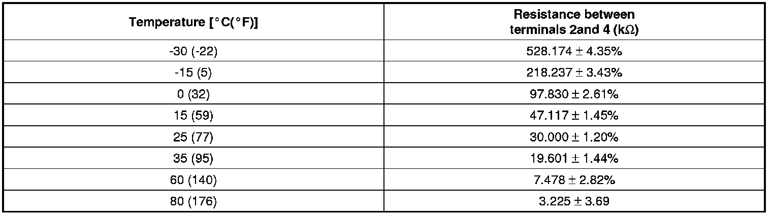 2. Blow air with changing temperature to the in car sensor air inlet. Measure sensor resistance between 2 and 4 terminals.