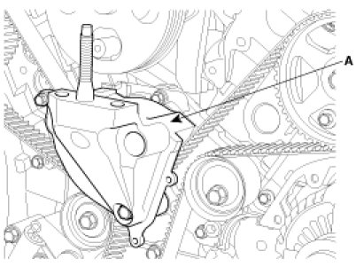 11. Remove the timing belt auto tensioner(A).