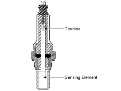 After it compares oxygen consistency of the atmosphere with the exhaust gas, it transfers the oxygen consistency of the exhaust gas to the ECM. When A/F ratio is rich or lean, it generates approximately 1V or 0V respectively. In order that this sensor normally operates, the temperature of the sensor tip is higher than 370°C (698°F). So it has a heater which is controlled by the ECM duty signal.