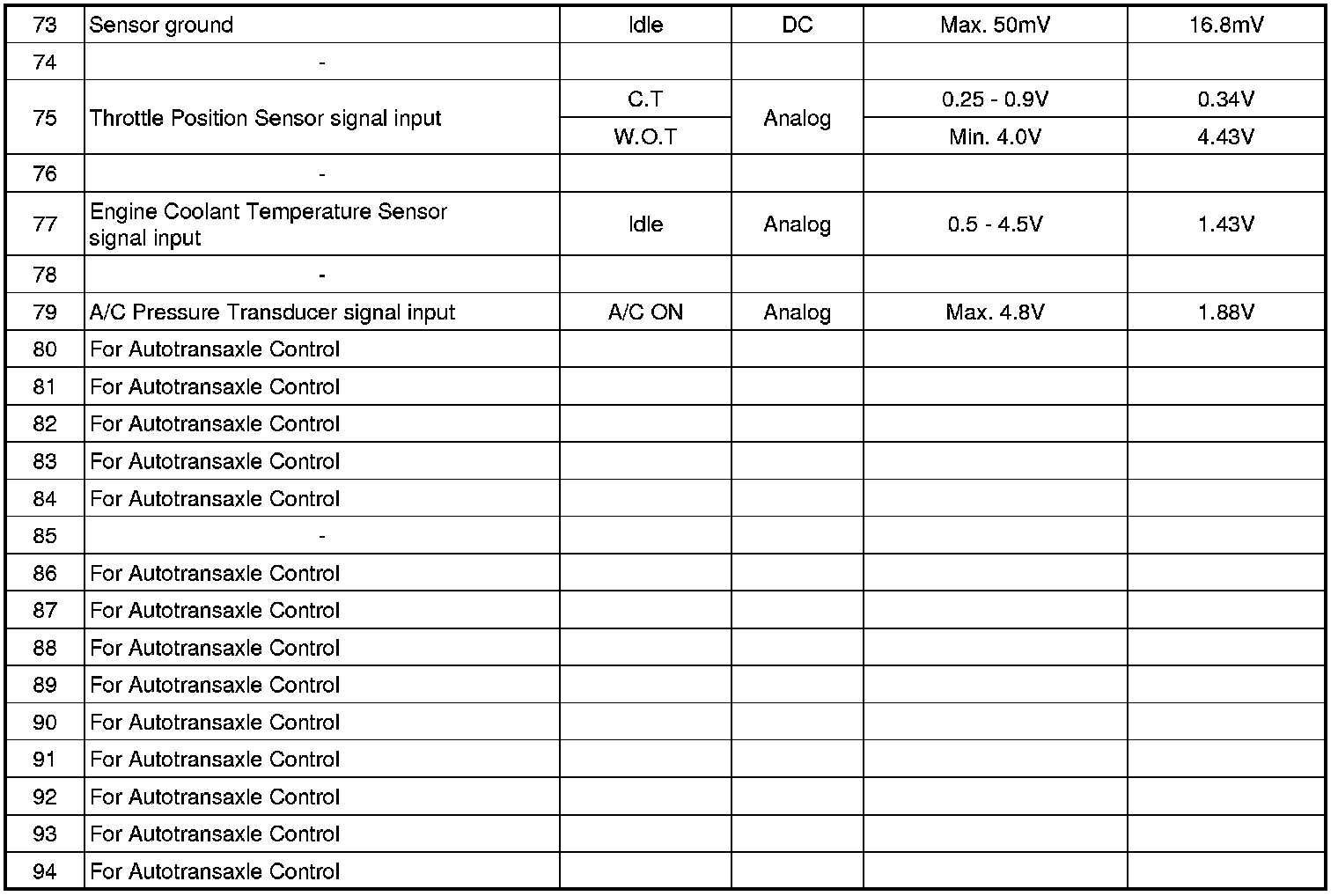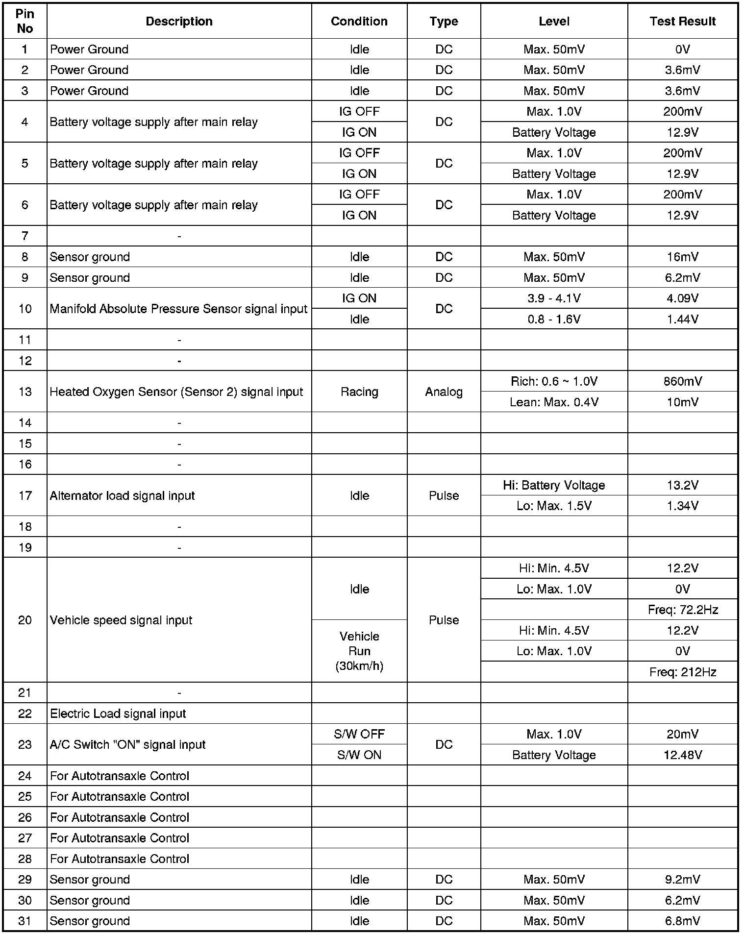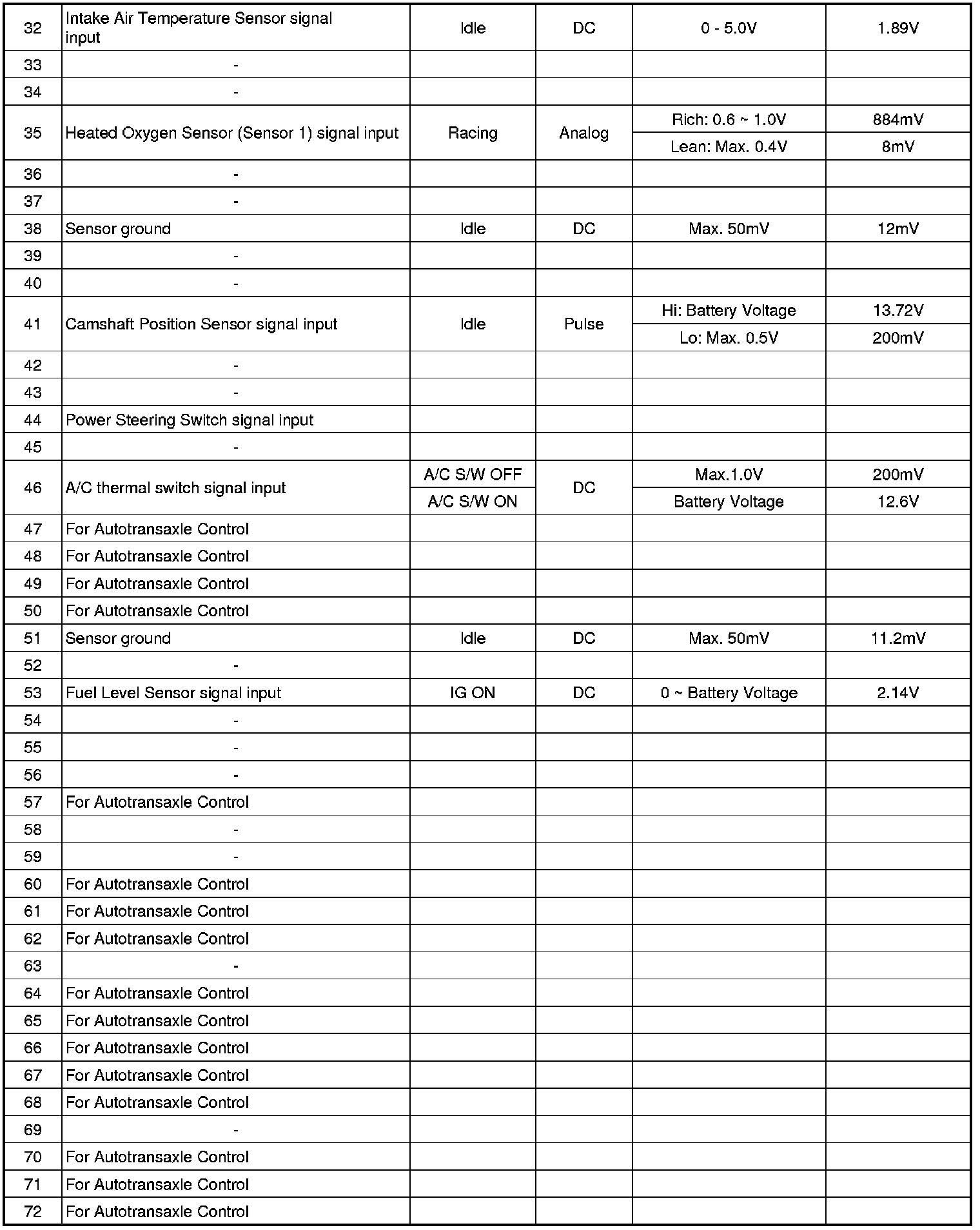 ECM Terminal Input/Output Signal (A/T)