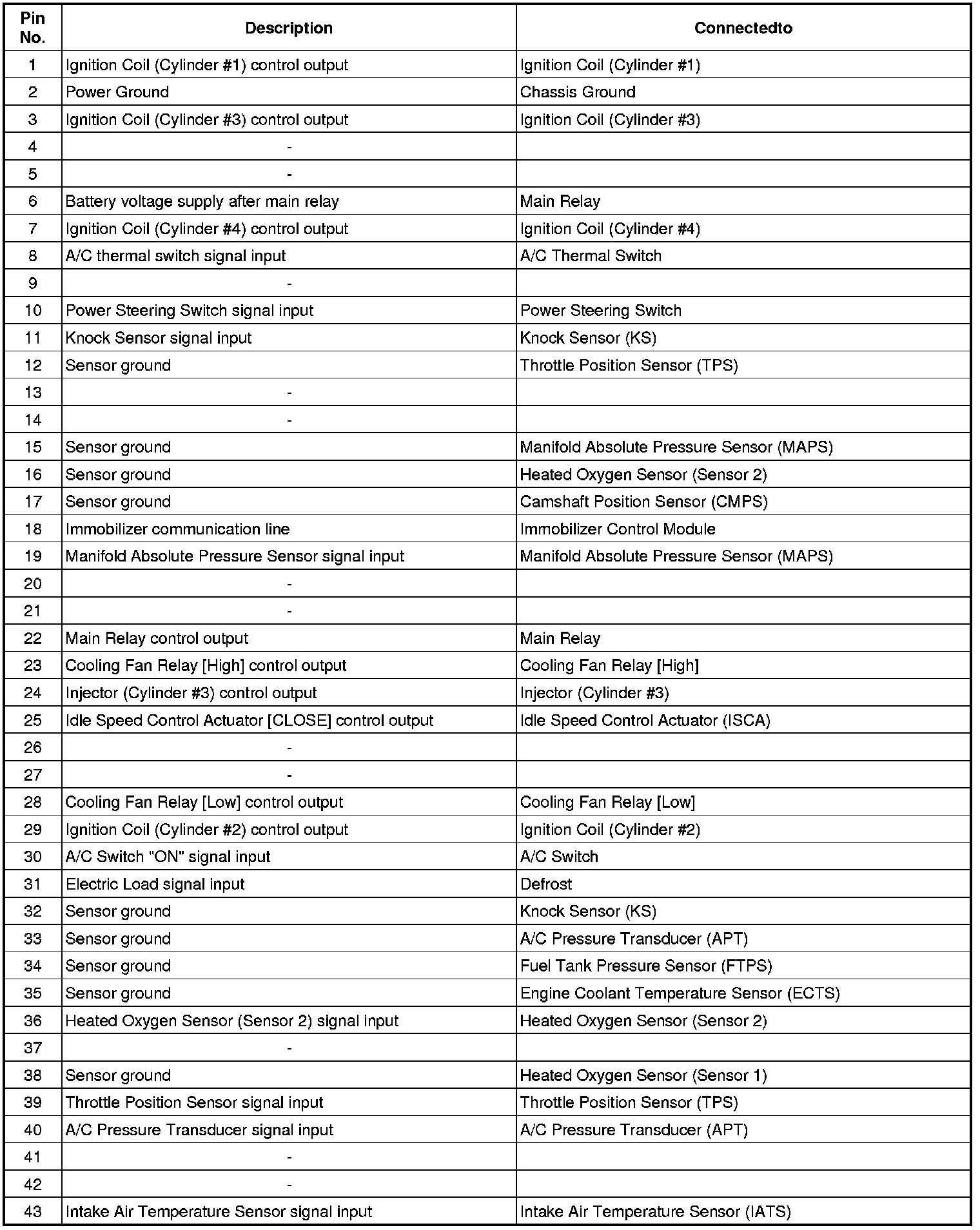 ECM Terminal And Input/Output signal