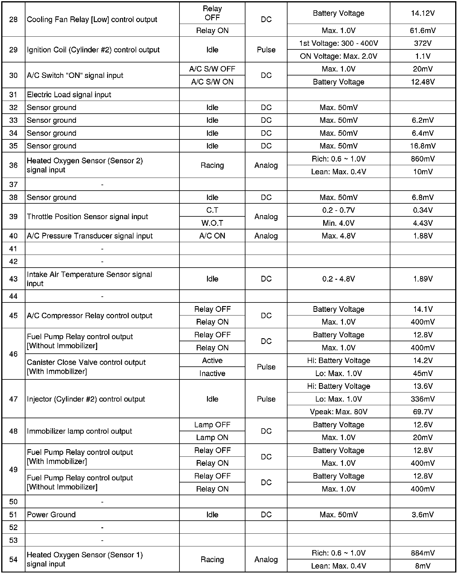 ECM Terminal Input/Output Signal (M/T)