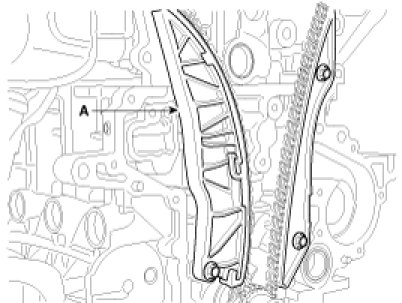 2. Check a contact surface of the chain tensioner arm and guide for abnormal wear, cracks or damage. Replace if necessary.