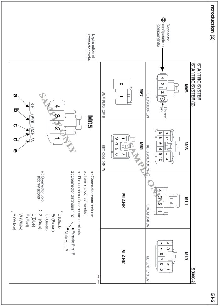 - It shows the front of the connector on the harness side when not to the harness connector. The terminal number on each connector can be obtained by following the pattern used in (5) connector view and numbering order. Unused terminals are marked with an asterisk (*).