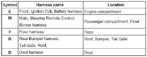 *It depends on vehicles, it is necessary to check the harness name symbol on the harness layouts for detailed symbol.