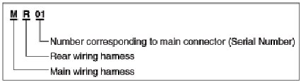 Electrical wiring connectors are classified according to the wiring parts in the Harness Layouts.