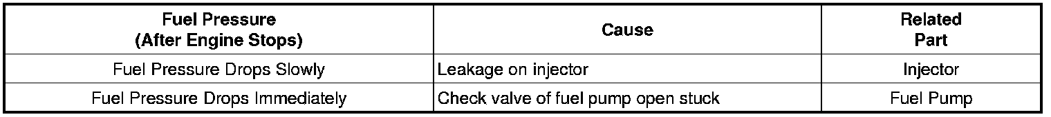 Fuel Pressure:338 - 348 kPa (3.45 - 3.55 kgf/cm2, 49.0 - 50.5 psi)