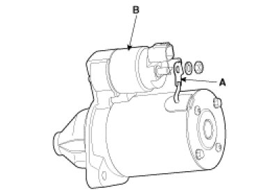 1. Disconnect the M-terminal (A) on the magnet switch assembly (B).