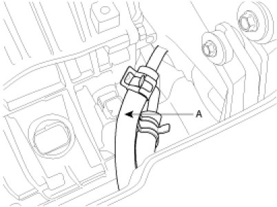 13. Connect the transaxle oil cooler hoses (A) to the tubes by fastening the clamps.