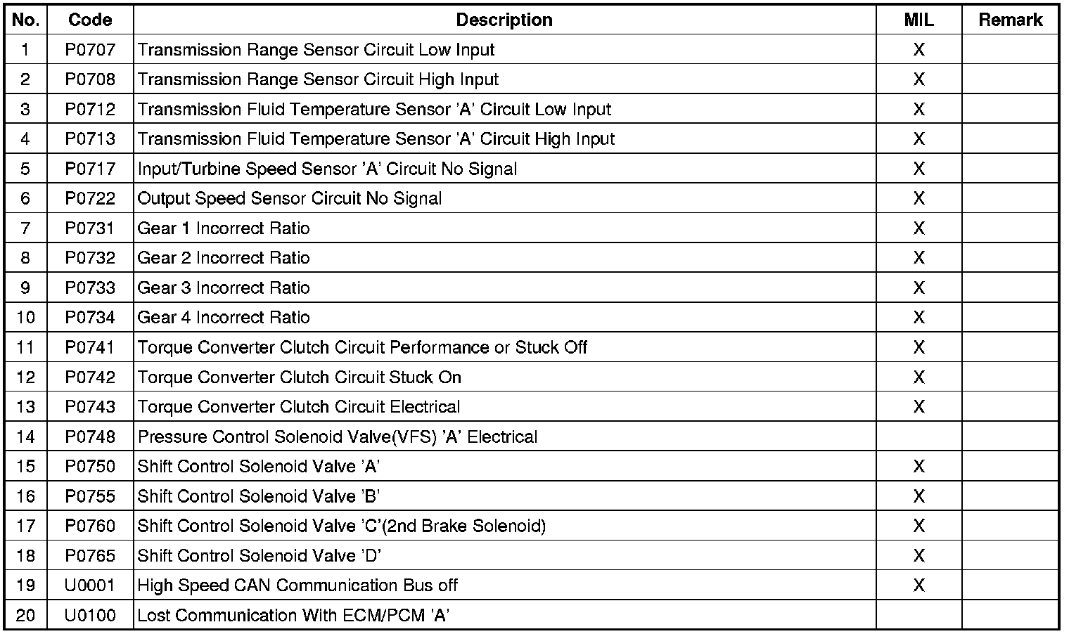 - All diagnostic trouble codes are deleted from memory the 200th time the ATF temperature reaches 50°C(122°F) after memorization of the most recent diagnostic code.