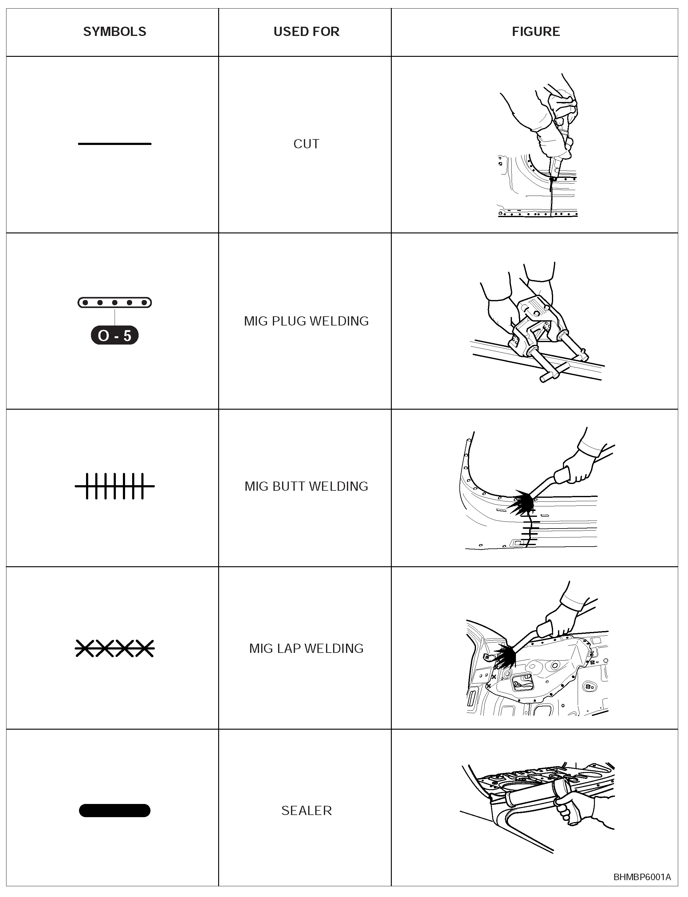 CODES FOR REMOVING AND INSTALLING BODY PANELS