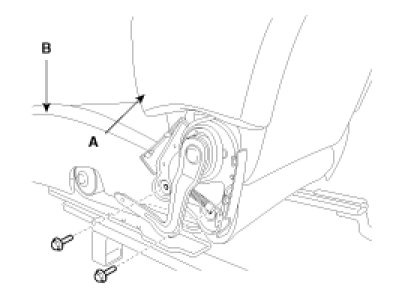 2. After loosening the mounting bolts, then disconnect the seat back frame (A) and seat cushion frame (B).