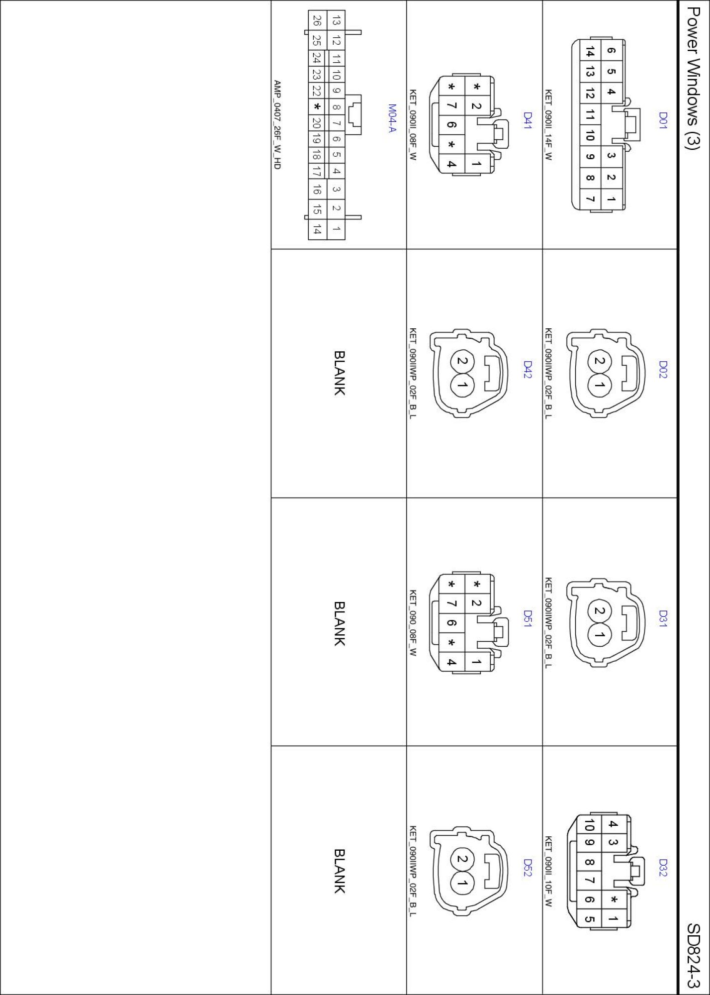 Power Windows (3) Connector Pin Outs: