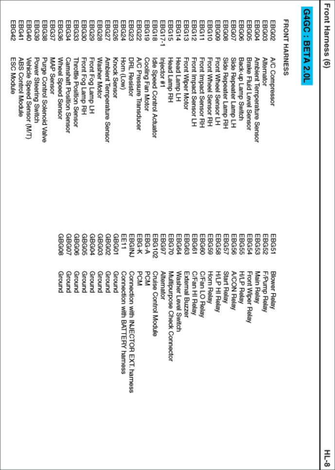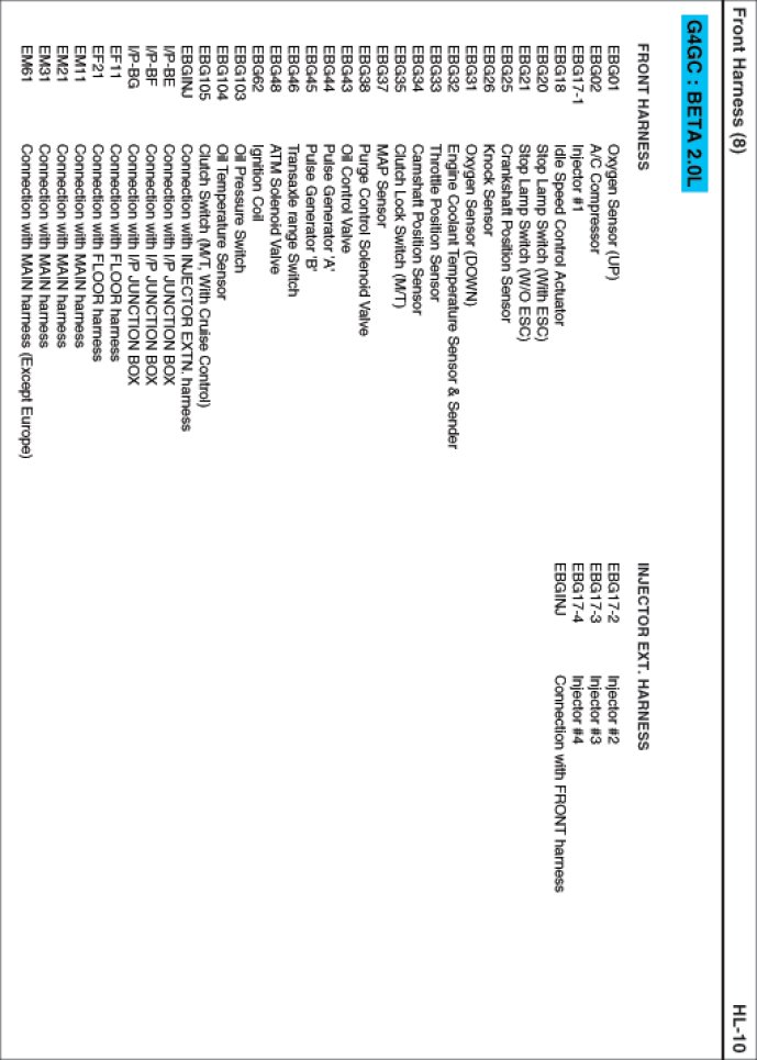 Front Harness Index: