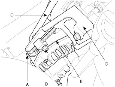3. Remove the adjusting bolt(A), lock bolt(B), the alternator belt(C) and the alternator mounting bracket(D).