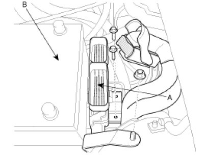 13. Install the transaxle upper mounting bolts (A-2ea) the starter motor mounting bolts (B-2ea).