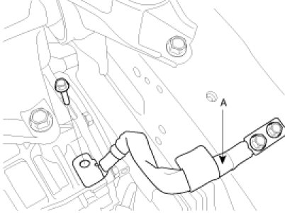 14. Connect the transaxle oil cooler hoses (A) to the tubes by fastening the clamps.