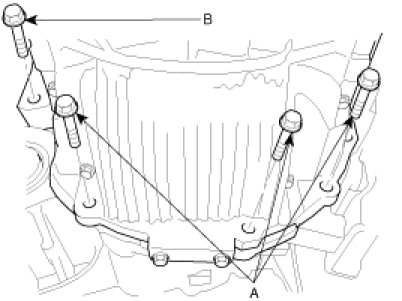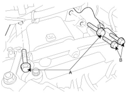 2. Install the transaxle lower mounting bolts (A-3ea, B-1ea).