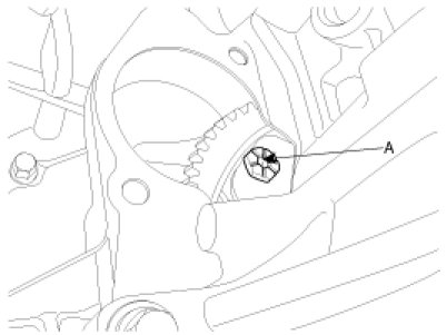 12. Drain the transaxle fluid by removing the oil drain plug (A).