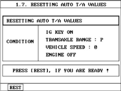5. Select 'RESETTING AUTO T/A VALUES' and perform the procedure
