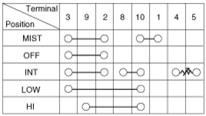 1. With the multi function switch in each position, make sure that continuity exists between the terminals below.