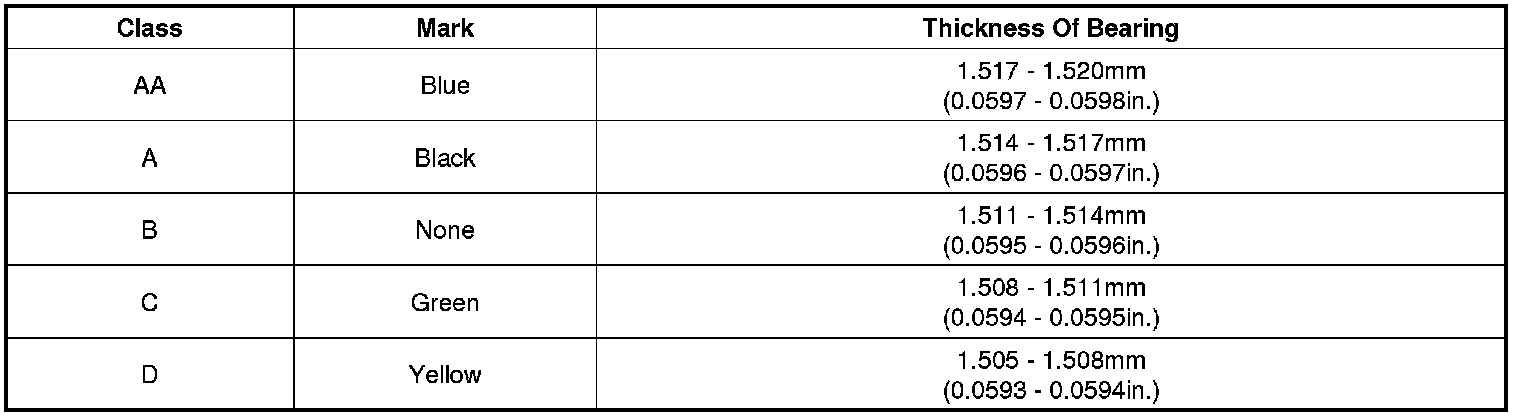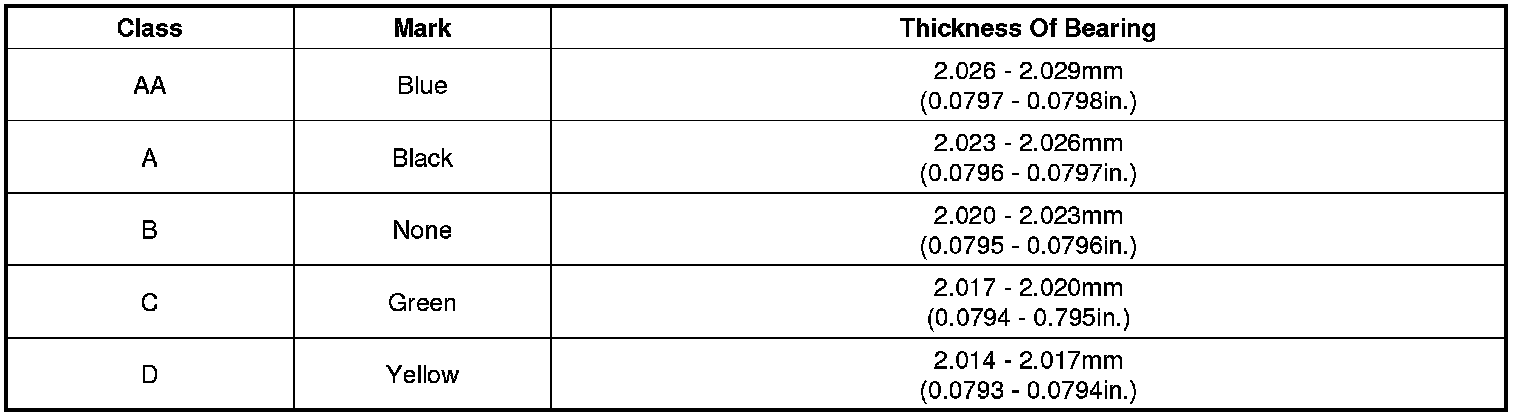 (7) If the plastigage shows the clearance is still incorrect, try the next larger or smaller bearing (the color listed above or below that one), and check clearance again.