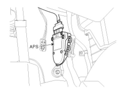 Accelerator Position Sensor (APS) is installed on the accelerator pedal module and detects the rotation angle of the accelerator pedal. The APS is one of the most important sensors in engine control system, so it consists of the two sensors which adapt individual sensor power and ground line. The second sensor monitors the first sensor and its output voltage is half of the first one. If the ratio of the sensor 1 and 2 is out of the range (approximately 1/2), the diagnostic system judges that it is abnormal.