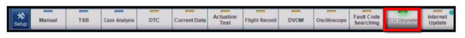 6. Once back at the GDS Main Screen select ECU Upgrade from the bottom right-hand corner. Next select Auto Mode and then Engine. Perform the ECM upgrade in accordance with normal GDS tool ECM upgrade procedures.