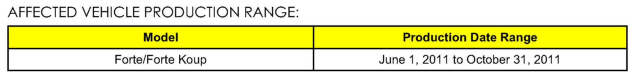 AFFECTED VEHICLE PRODUCTION RANGE