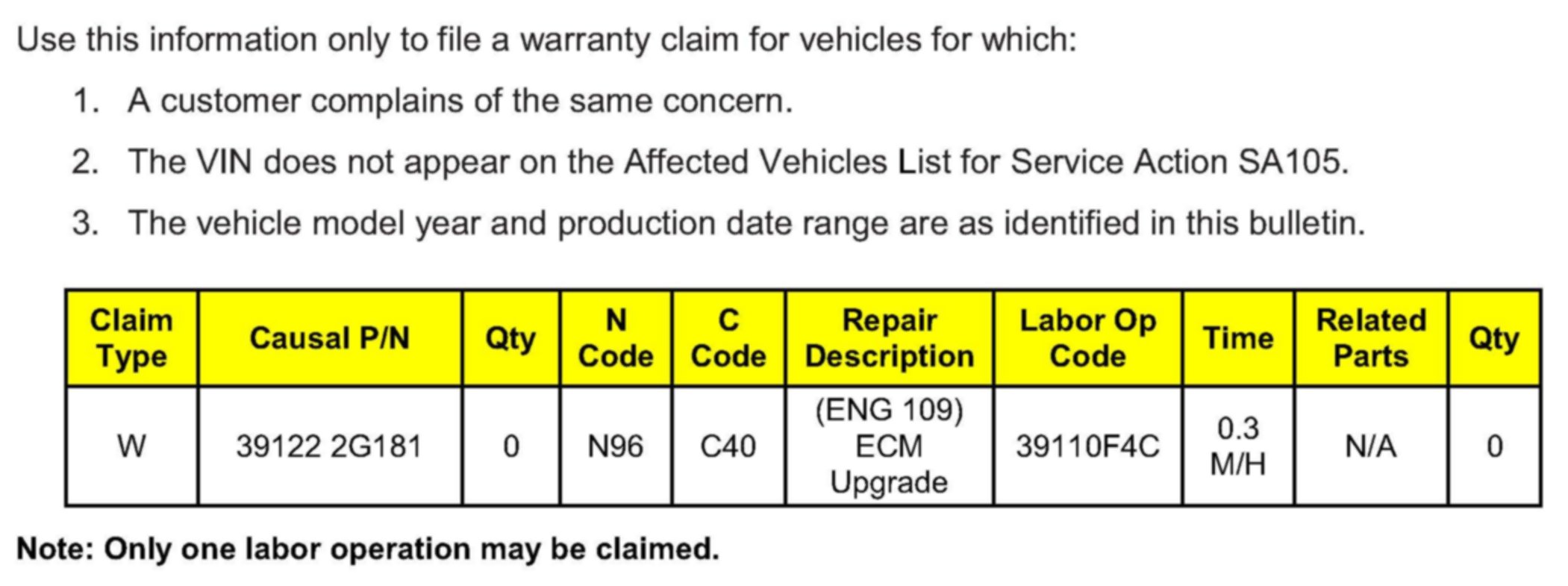 VIN inquiry data for this repair is provided for tracking purposes only. Kia retailers should reference SA105 when accessing the WebDCS system.