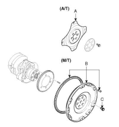 - Always use new flywheel (drive plate) bolts(C).